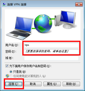 在任何时候通过使用已创建的 VPN 连接设置,您可以开始一个 VPN 连接。